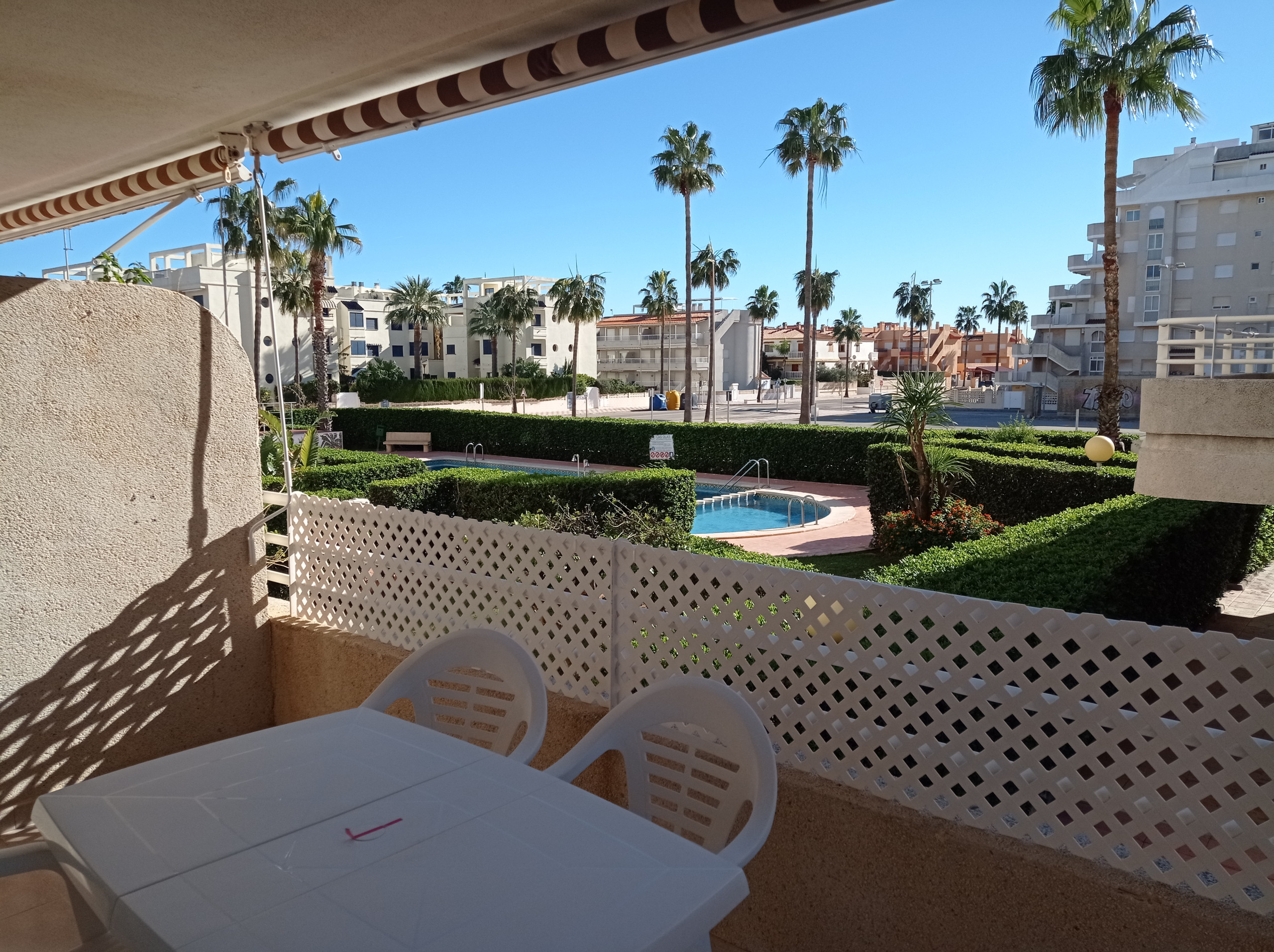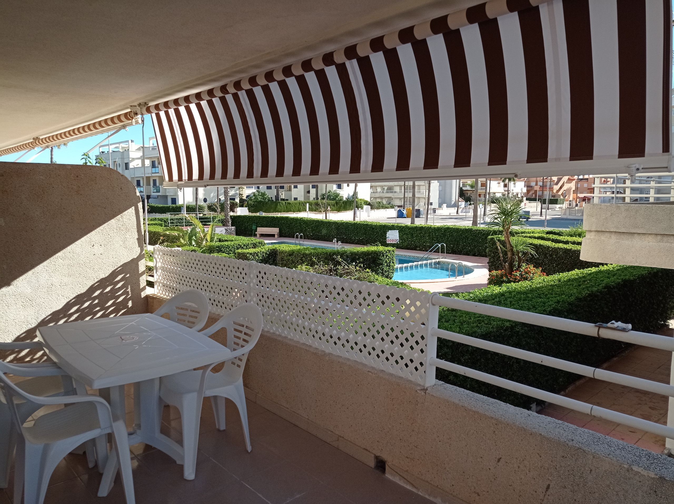 Bonito e impecable apartamento en primera planta, con gran terraza que rodea todo casi todo el perímetro del apartamento. Tiene dos dormitorios, dos baños (uno con bañera, otro con ducha), cocina independiente equipada con lavavajillas, con acceso terraza-galería. Amplio salón comedor con salida a la misma terraza, de orientación Sur con toldo, con vistas a la piscina y zonas ajardinadas. Incluye aire acondicionado en ambos dormitorios y en el salón-comedor. Ofrece servicio Wifi-internet, y también incluye plaza de garaje cubierta. Capacidad máxima 4 personas.