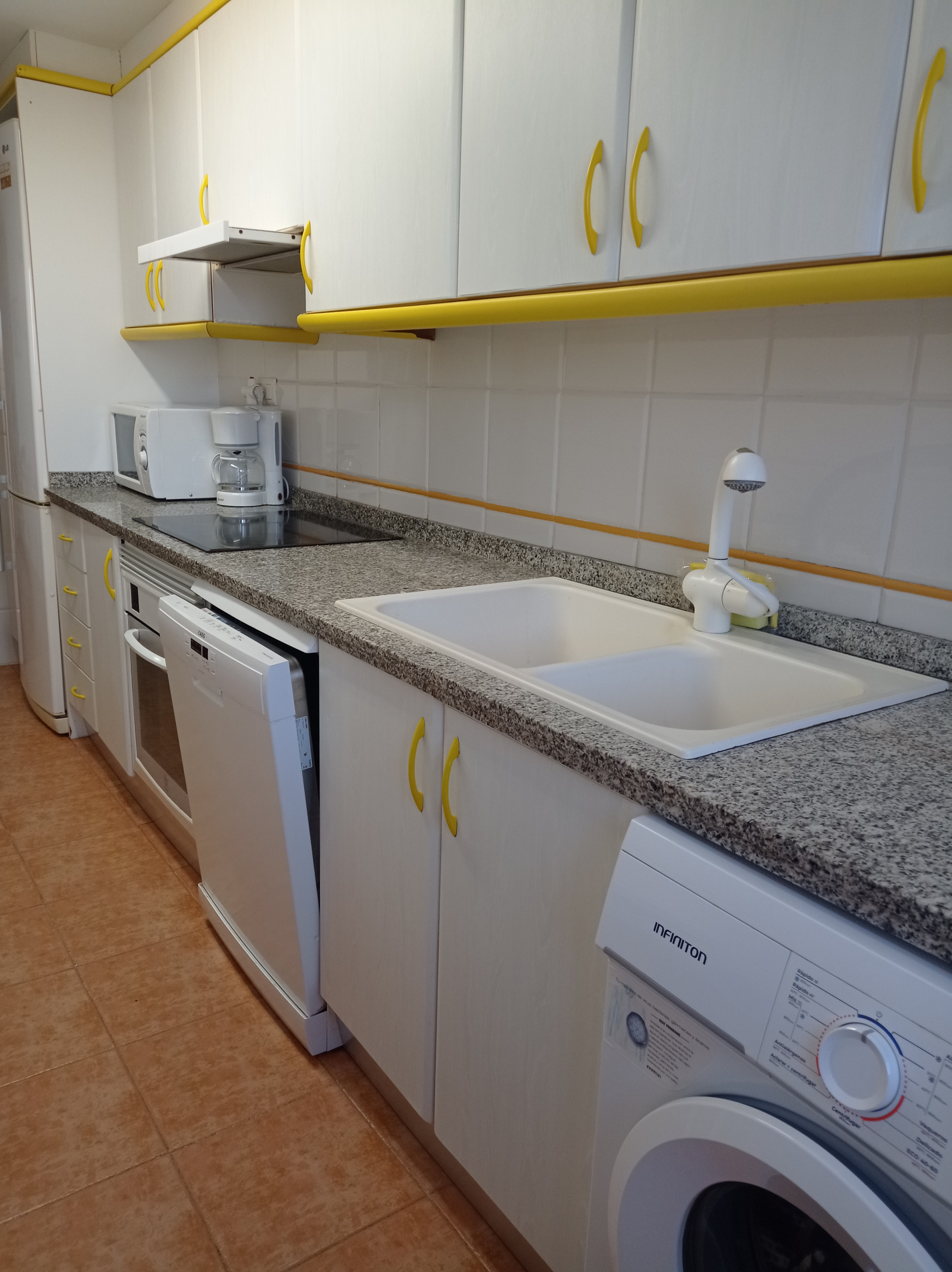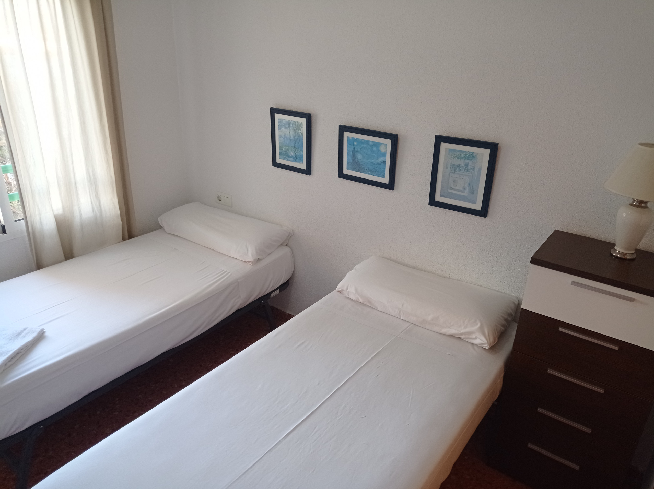 Wohnanlage, die sich 280 Meter vom feinen Sandstrand entfernt befindet, im Nordbereich des Strandes von Gandia, eine ruhige und wohnliche Erholungszone. Makellose Wohnung mit drei Doppelschlafzimmern und zwei Badezimmern (Badewanne/Dusche), möbliert für einen komfortablen und angenehmen Urlaub. Ausrichtung Süd-Nord, komplett nach außen, mit Ausnahme der Badezimmer. Vollständig ausgestattete Küche mit Geschirrspüler, Fenster mit Blick auf den Pool und die Gemeinschaftsbereiche. Geräumiger Wohn-Essbereich, von dem aus man auf die sonnige Südterrasse (mit Markisen/Vorhängen) gelangt, von wo aus man täglich fabelhaften Ausblick genießen kann. Bietet WLAN-Service, einen schönen Gemeinschaftspool mit abgegrenztem Kinderbereich, weitläufige, gärtnerisch gestaltete Gemeinschaftsbereiche, Spielplatzbereich für Kinder, Street-Basketball und Tennisplatz.