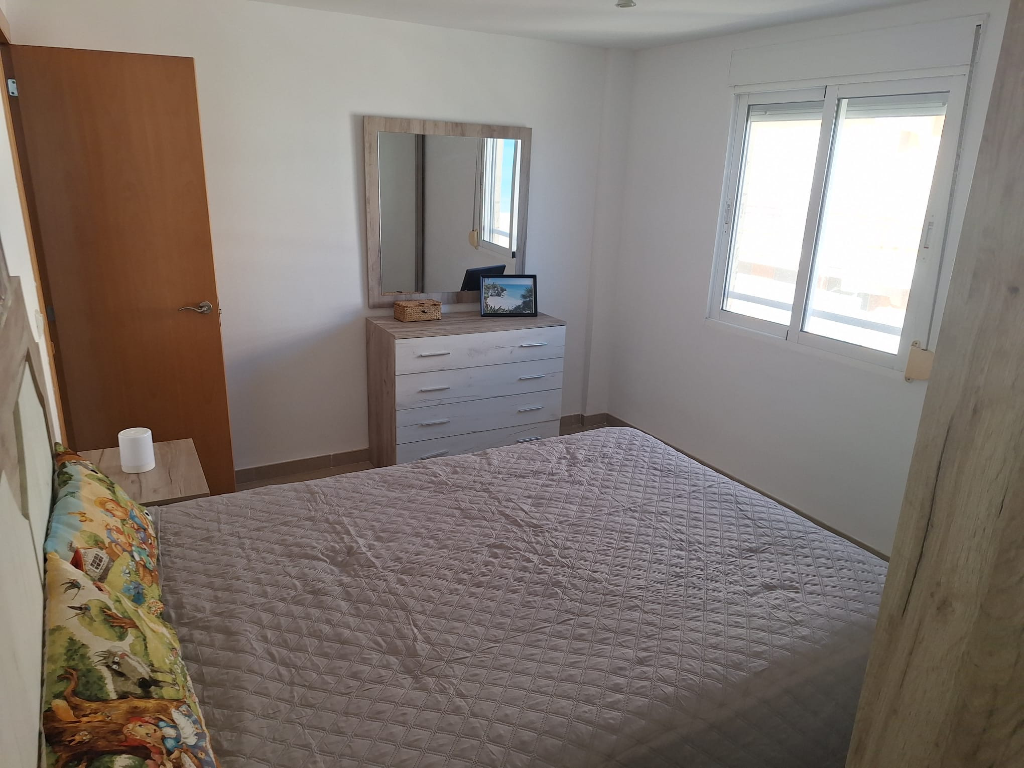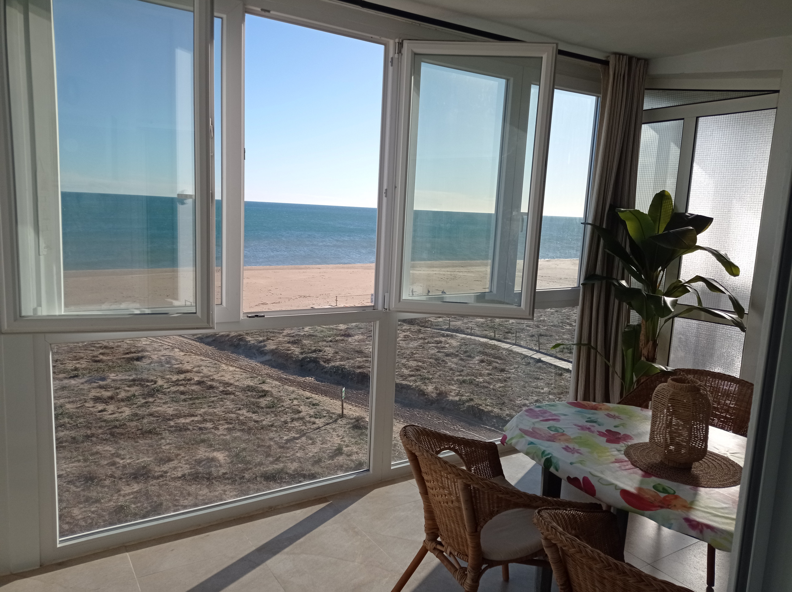 Fantastische Wohnung im vierten Stock mit drei Doppelschlafzimmern, einem Badezimmer mit Dusche, einer Toilette, separater Küche und einem geräumigen Wohn-Esszimmer mit Ausgang zu einer verglasten Terrasse in Ostausrichtung, direkt zum Meer mit fabelhaften Meerblick. Kürzlich renoviert, alles neu und unbenutzt! Es gibt Klimaanlage im Wohnzimmer sowie Deckenventilator in den Hauptschlafzimmern und im Wohn-Esszimmer.