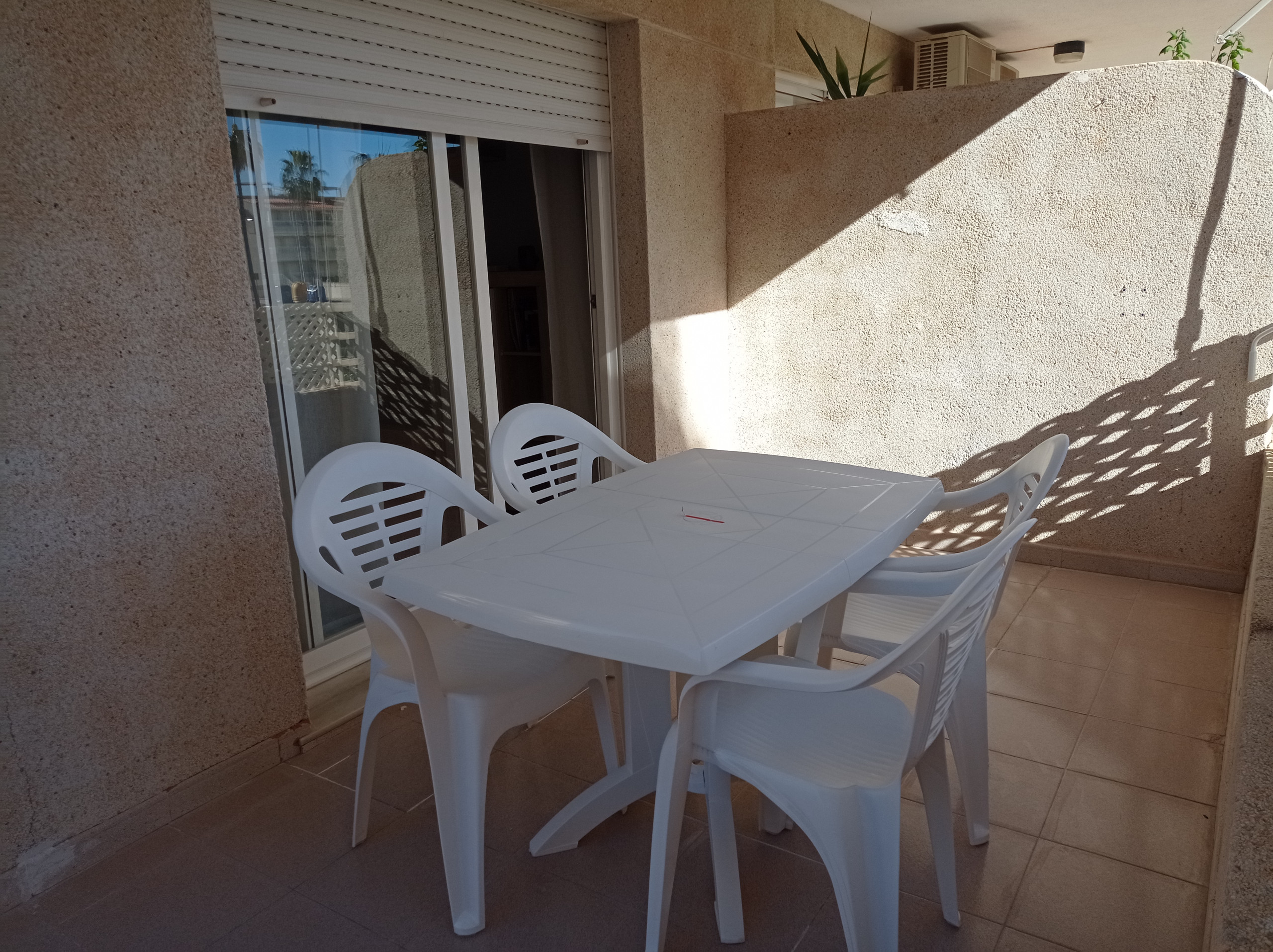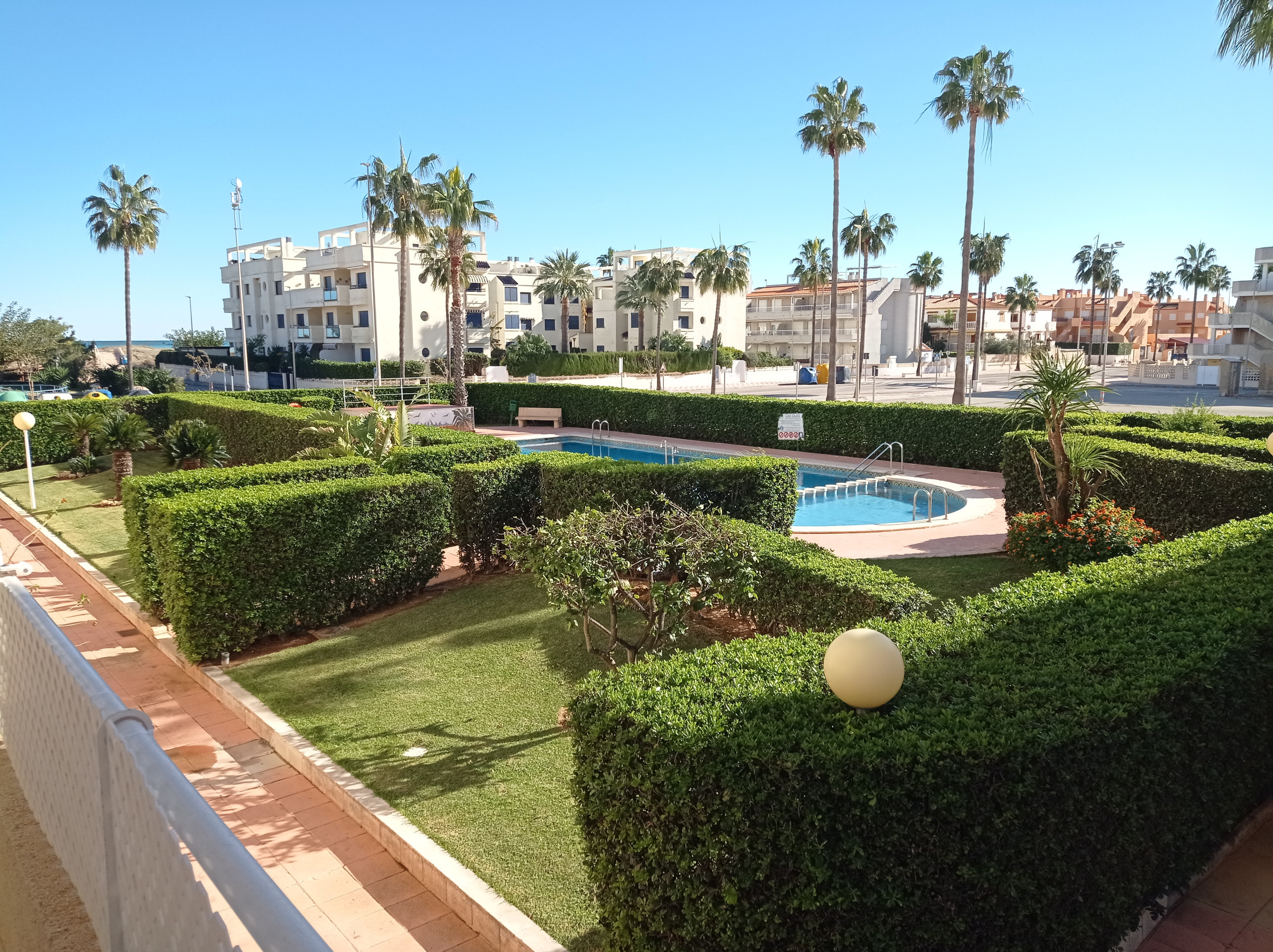 Schöne und makellose Wohnung im ersten Stock mit großer Terrasse, die fast den gesamten Umfang der Wohnung umgibt. Sie verfügt über zwei Schlafzimmer, zwei Badezimmer (eines mit Badewanne, das andere mit Dusche), separate, mit Geschirrspüler ausgestattete Küche mit Zugang zur Terrasse-Galerie. Geräumiger Wohn-Essbereich mit Ausgang zur gleichen Terrasse, Südausrichtung mit Markise, mit Blick auf Pool und Gartenbereiche. Beinhaltet Klimaanlage in beiden Schlafzimmern und im Wohn-Essbereich. Bietet WLAN-Internetservice und beinhaltet auch einen überdachten Garagenplatz. Maximale Kapazität 4 Personen.