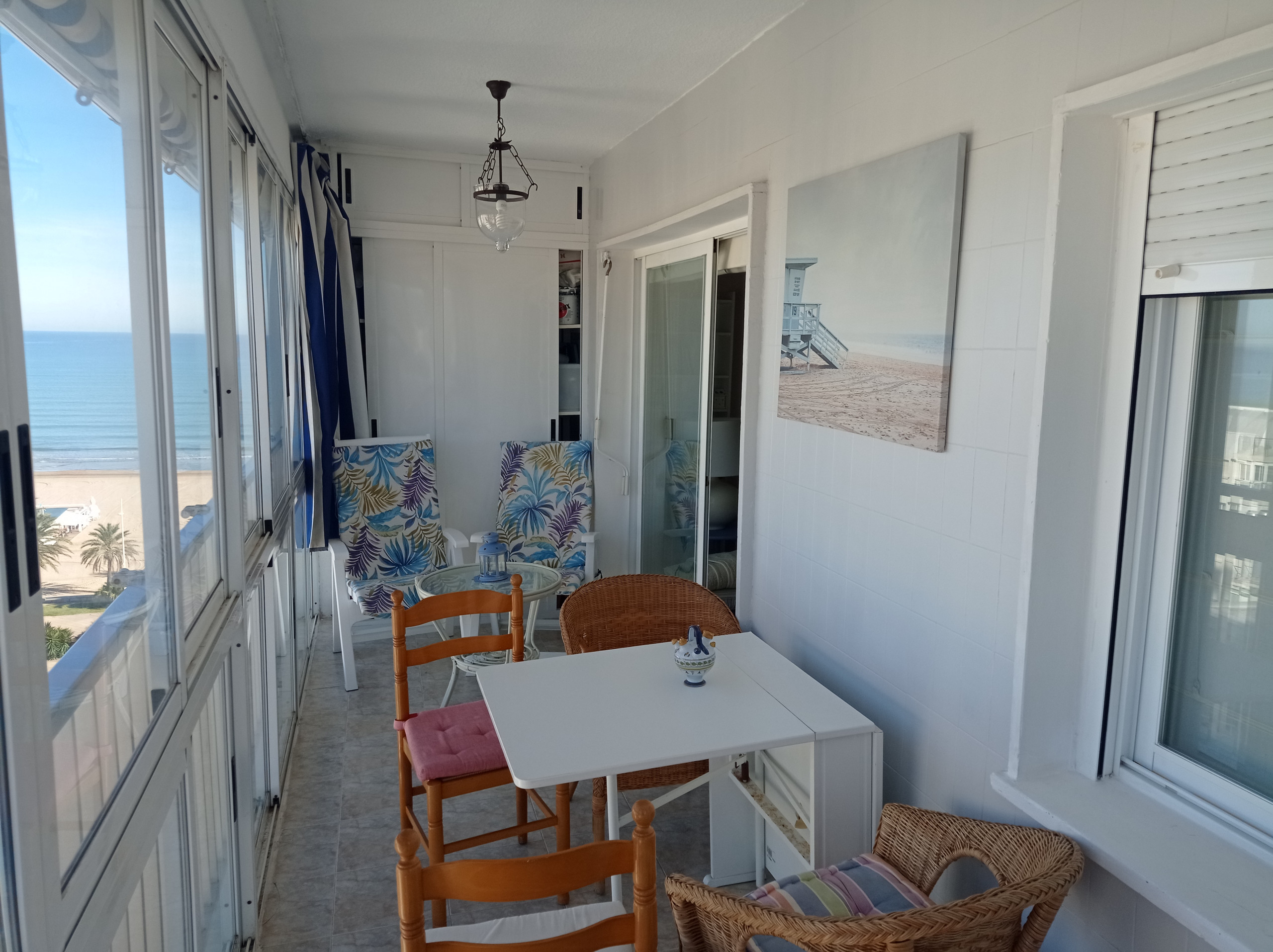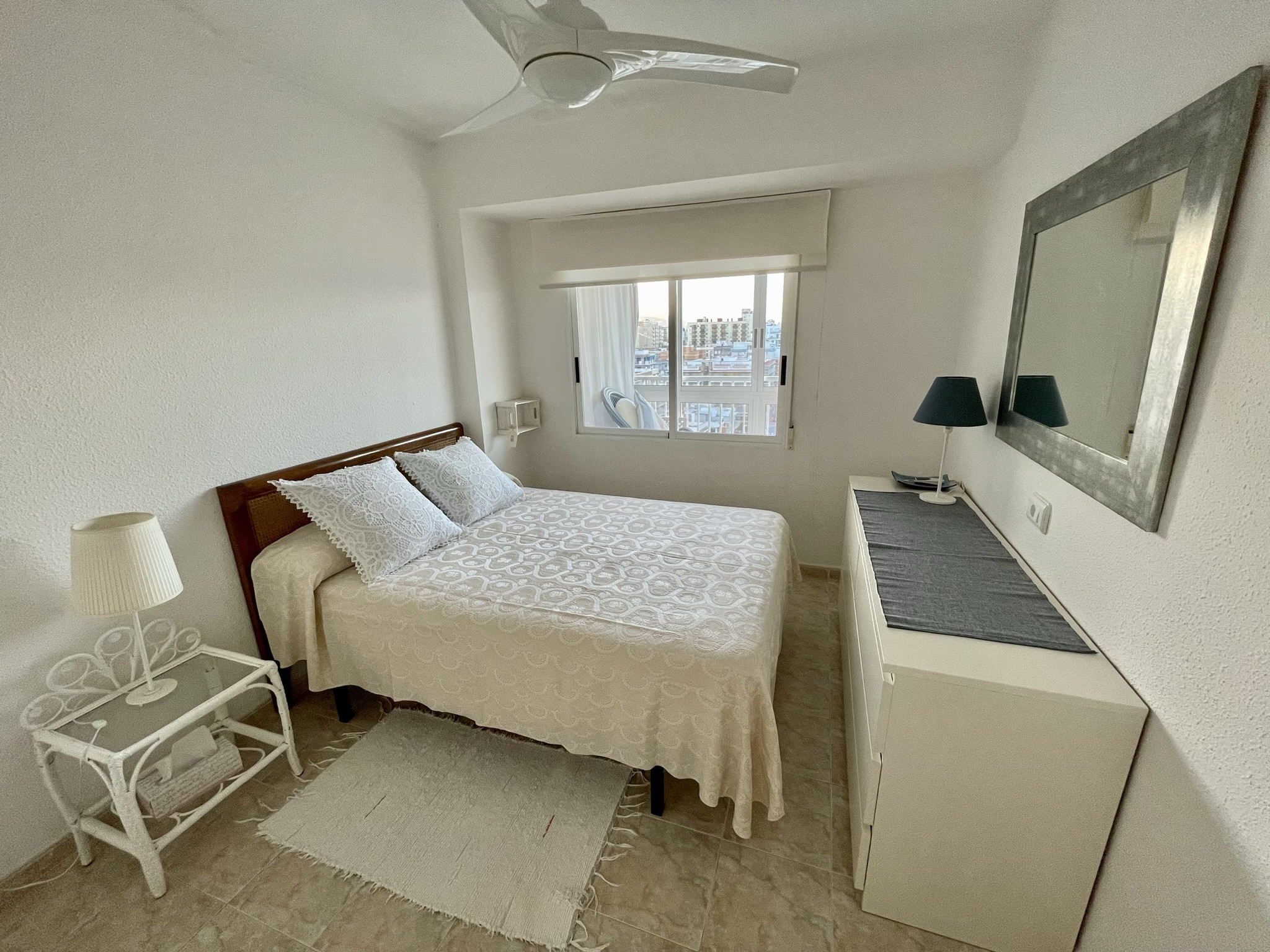 This apartment offers two double bedrooms with built-in wardrobes, a beautiful, exterior and bright renovated bathroom with bathtub, and a spacious and independent kitchen equipped with dishwasher. Living room with access to the north-facing terrace, from which we enjoy fabulous views of the Mediterranean Sea and the beach. Includes WIFI service and offers ceiling fans in both bedrooms.