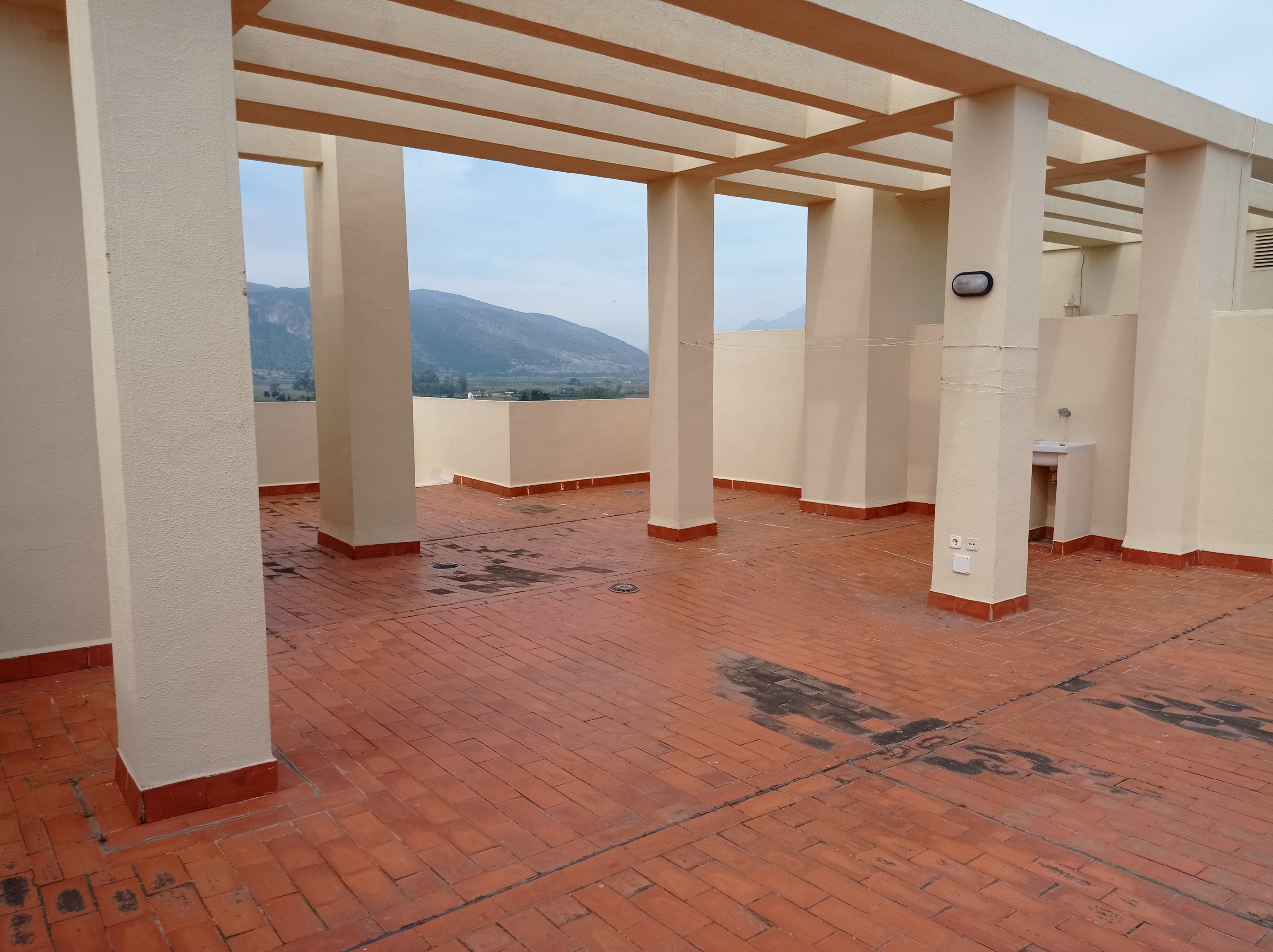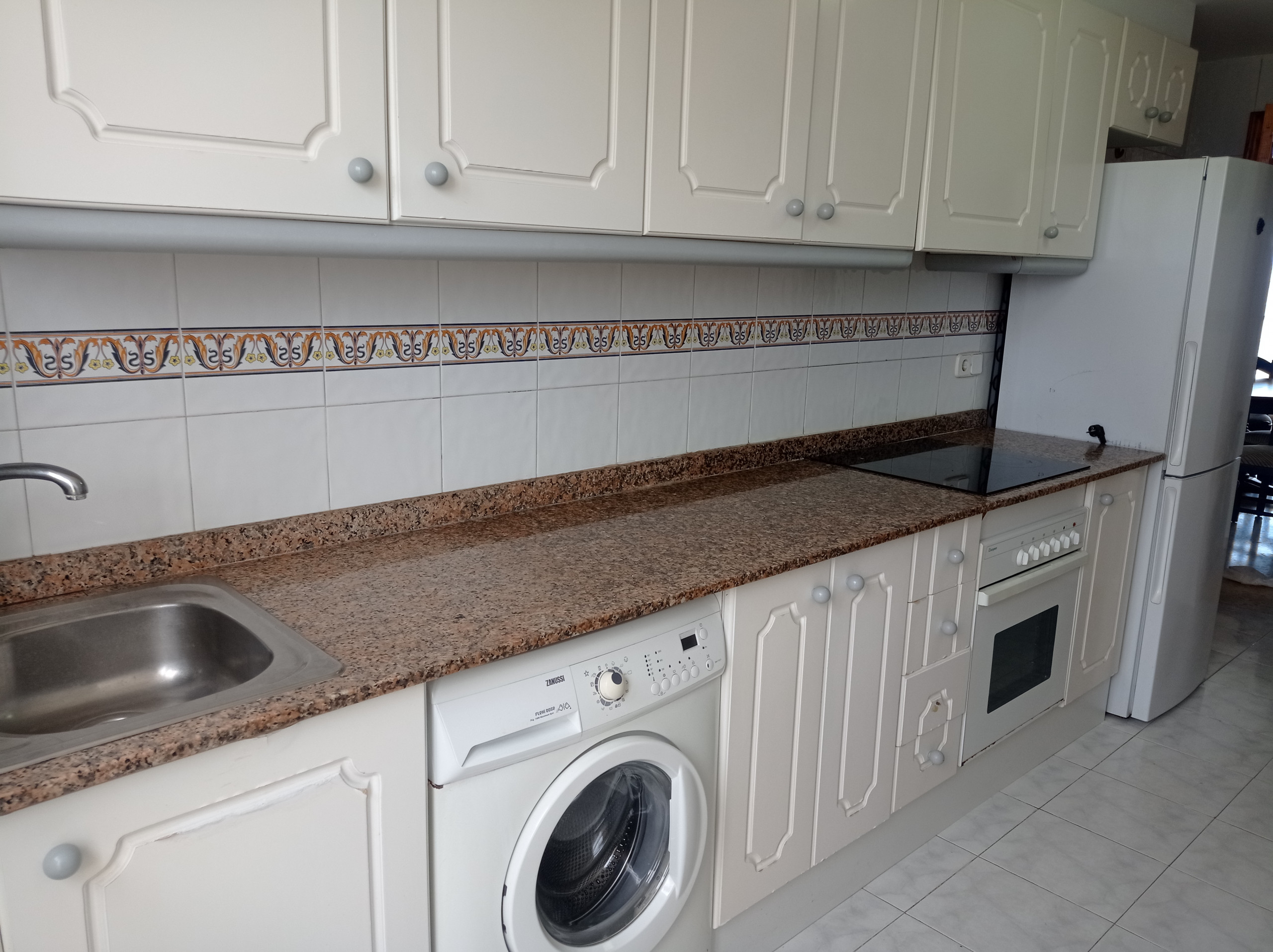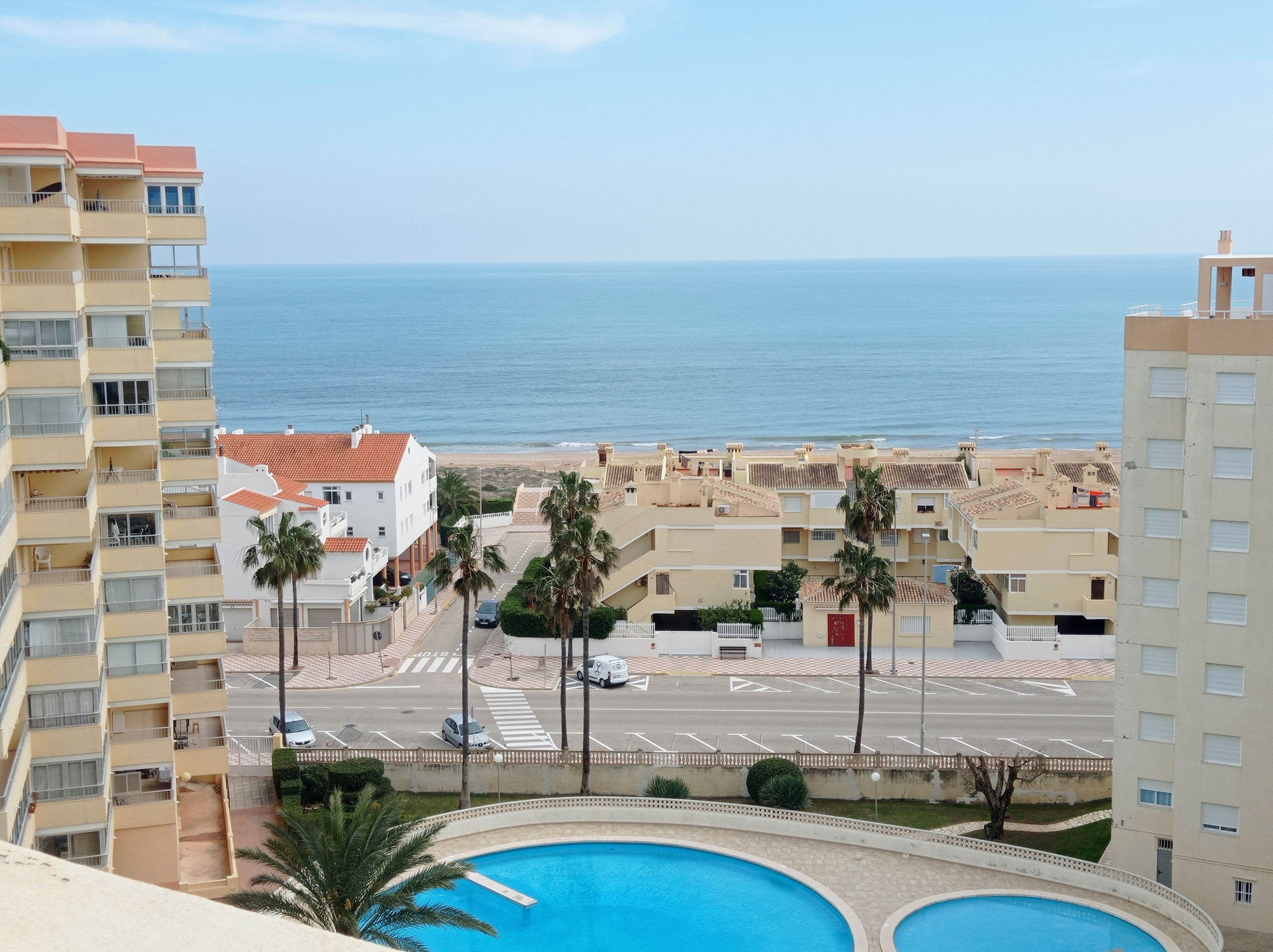Beautiful and spacious apartment with three bedrooms, one bathroom (with bathtub), a toilet-shower, and independent kitchen with access via exterior stairs to a large upper terrace. Comfortable living room with exit to a beautiful and sheltered east-facing front terrace with awning from where to enjoy views of the sea, the pool and the landscaped common areas. Equipped with ceiling fans in all bedrooms, it has WIFI service and includes a garage space.