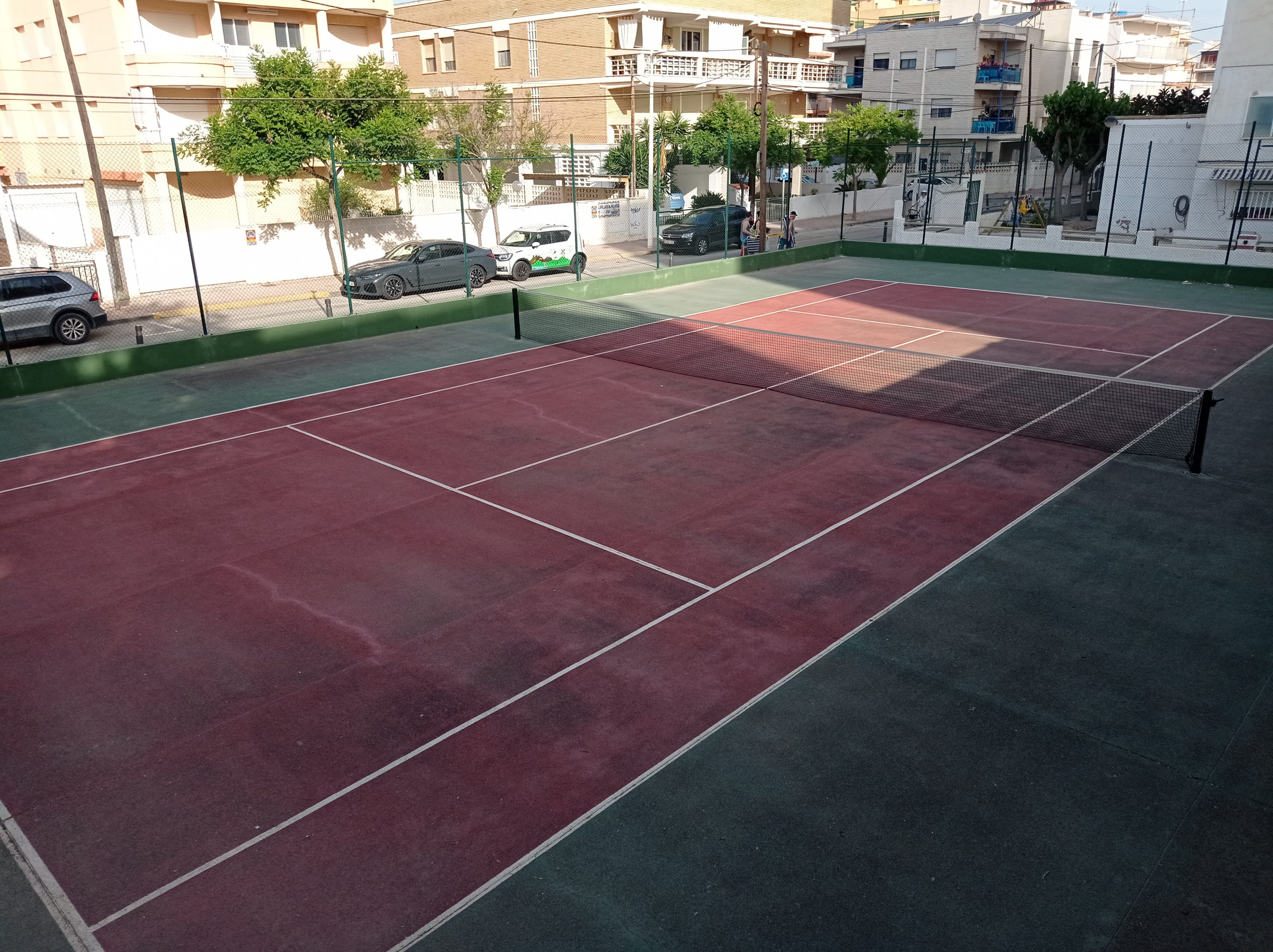 L'immeuble dispose d'une piscine communautaire avec une zone pour enfants délimitée, des espaces communs avec un petit parc avec balançoires, et un court de tennis.