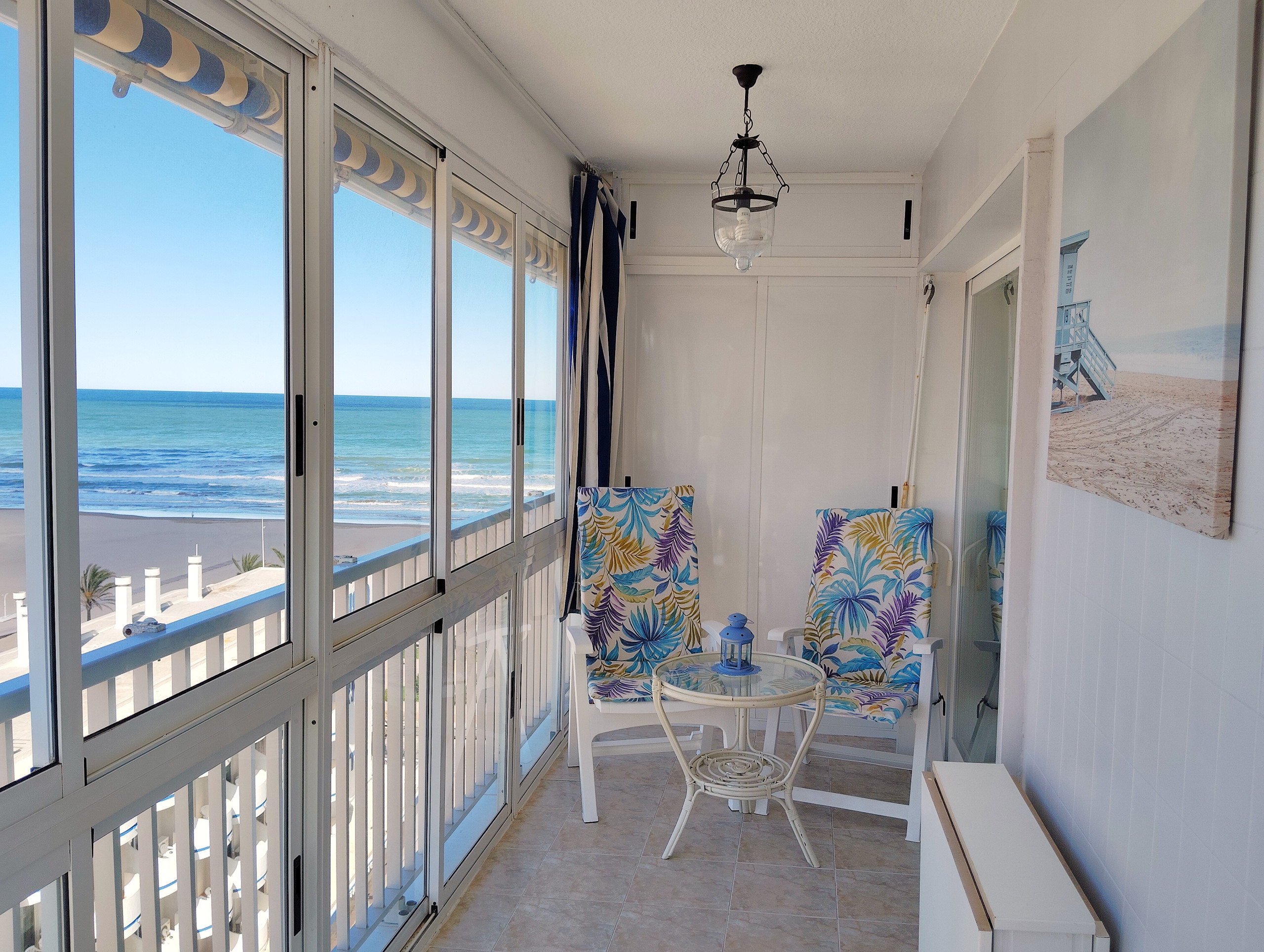 Cet appartement offre deux chambres doubles avec placards intégrés, une belle salle de bain extérieure et lumineuse rénovée avec baignoire, et une cuisine spacieuse et indépendante équipée d'un lave-vaisselle. Salon-salle à manger avec sortie sur la terrasse d'orientation Nord fraîche, depuis laquelle nous profitons de fabuleuses vues sur la mer Méditerranée et la plage. Comprend un service WIFI et offre un ventilateur de plafond à la fois dans le salon et dans la chambre principale.