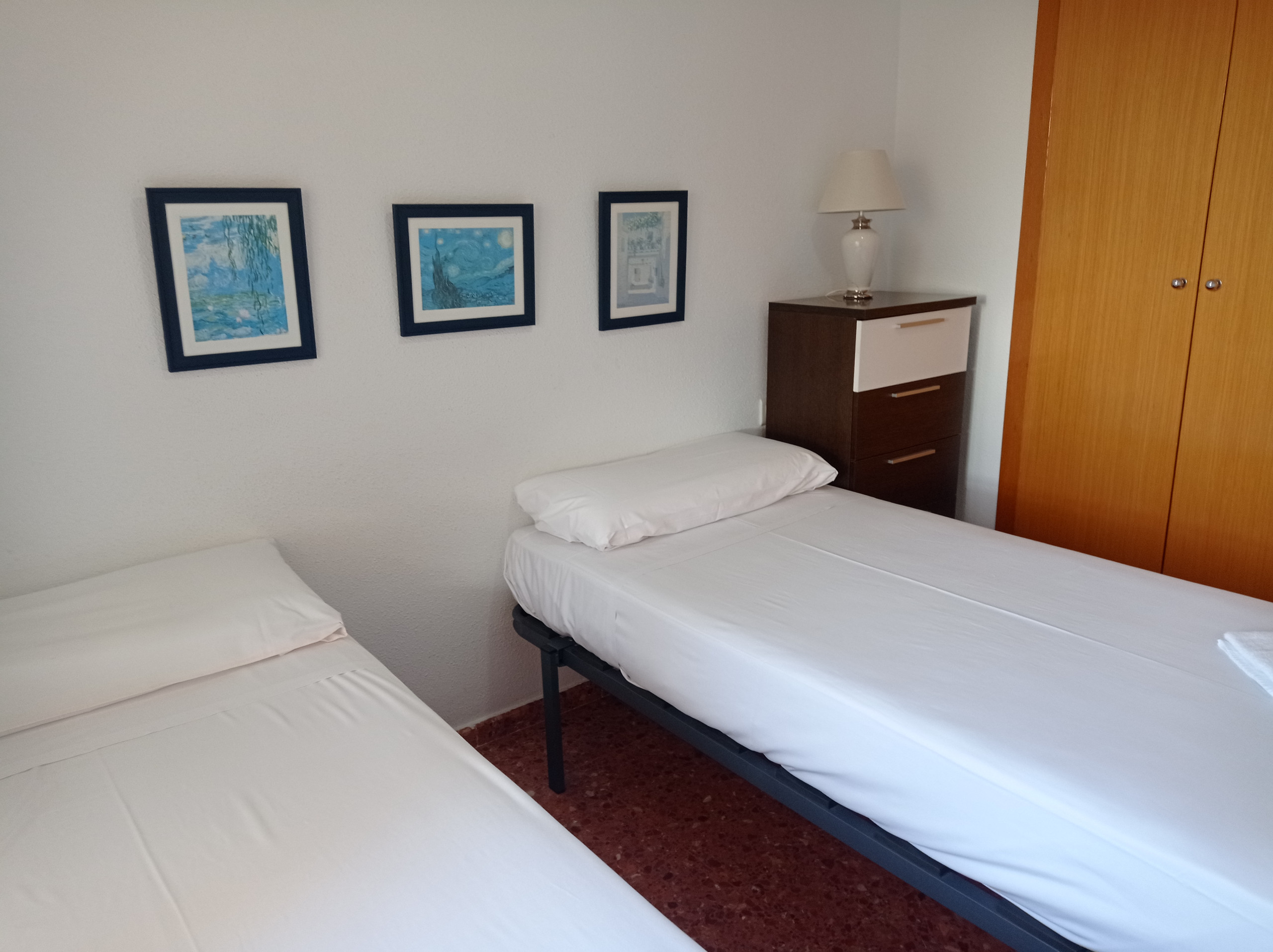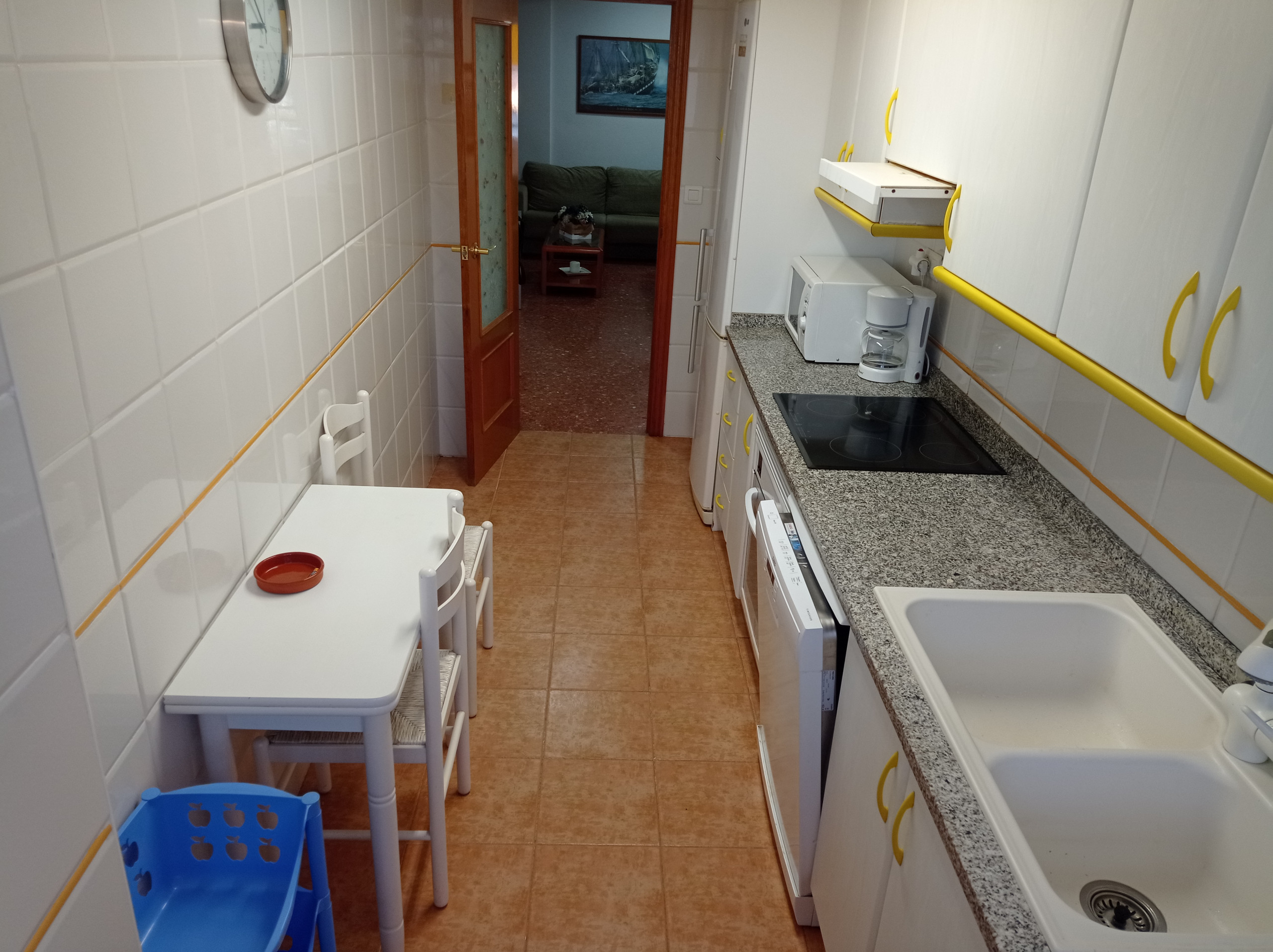 Résidence située à 280 mètres du sable fin de la plage, dans la zone Nord de la plage de Gandia, zone calme et résidentielle garantissant le repos. Appartement impeccable, avec trois chambres doubles et deux salles de bains (baignoire/douche), meublé pour profiter de vacances confortables et agréables. Orientation Sud-Nord, tout extérieur sauf les salles de bains. Cuisine entièrement équipée avec lave-vaisselle, fenêtre donnant sur la piscine et les zones communes. Grand salon-salle à manger, depuis lequel on accède à la terrasse Sud ensoleillée (avec stores/rideaux) offrant chaque jour de fabuleuses vues. Propose un service WIFI, une belle piscine communautaire avec un bassin pour enfants délimité, de vastes zones communes aménagées, une aire de jeux pour les petits, un terrain de Street-Basket et un court de tennis.