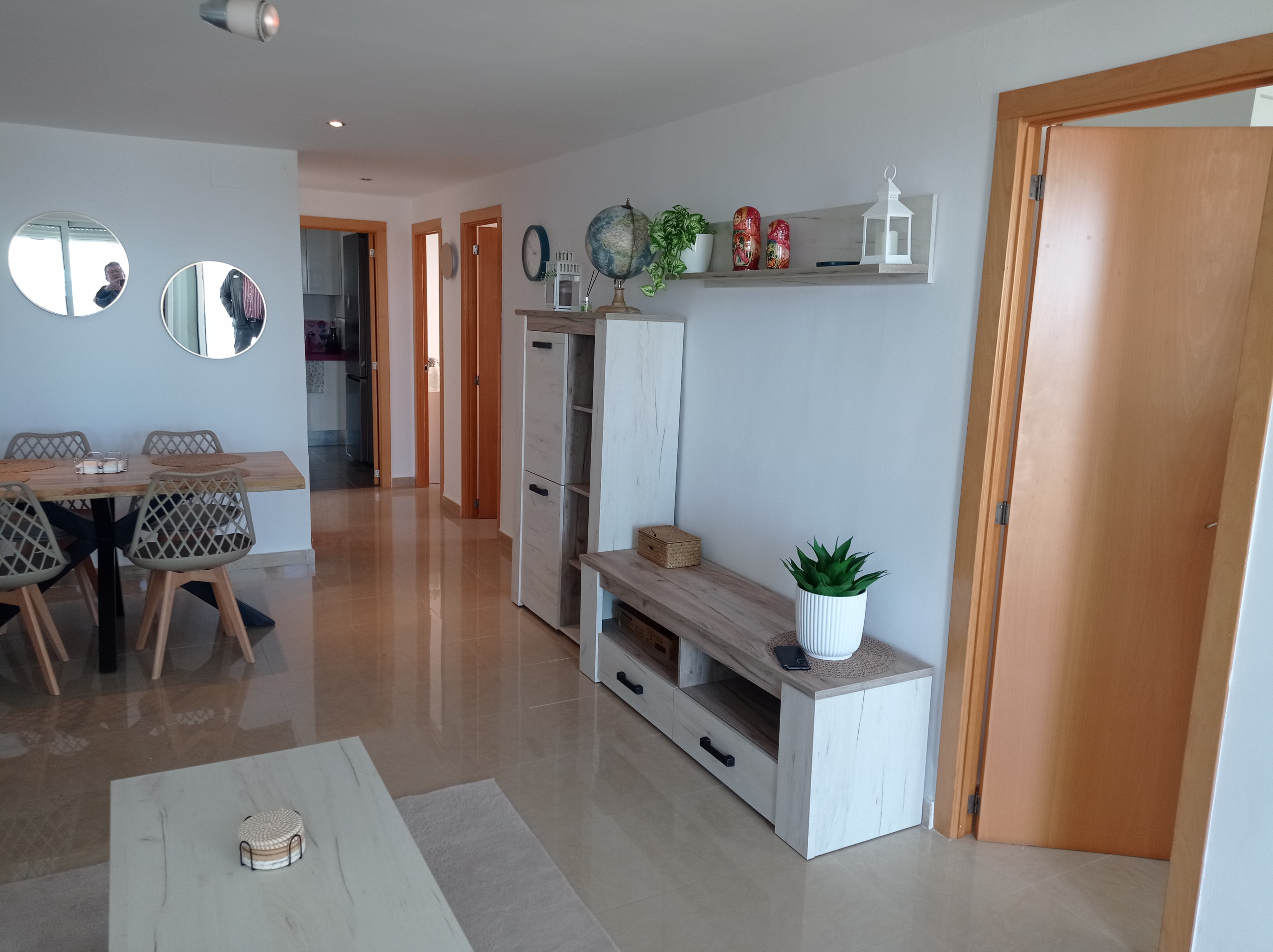Fantastique appartement au quatrième étage, avec trois chambres doubles, une salle de bain avec douche, des toilettes, une cuisine indépendante et un grand salon-salle à manger avec sortie sur une terrasse vitrée orientée Est, face à la mer, avec de fabuleuses vues sur la mer. Récemment rénové, tout neuf ! Il dispose de la climatisation dans le salon, ainsi que de ventilateurs de plafond dans les chambres principales et dans le salon-salle à manger.