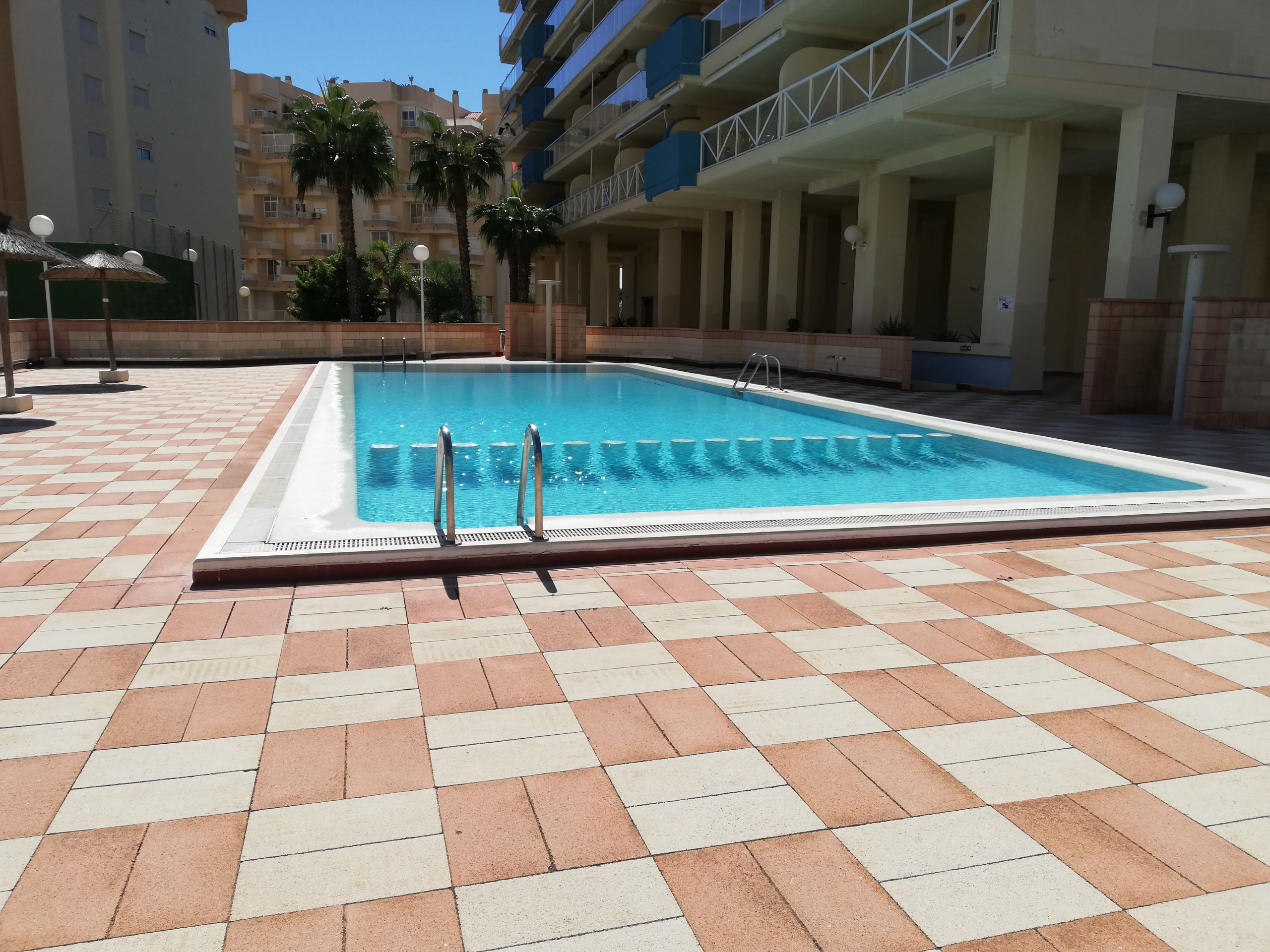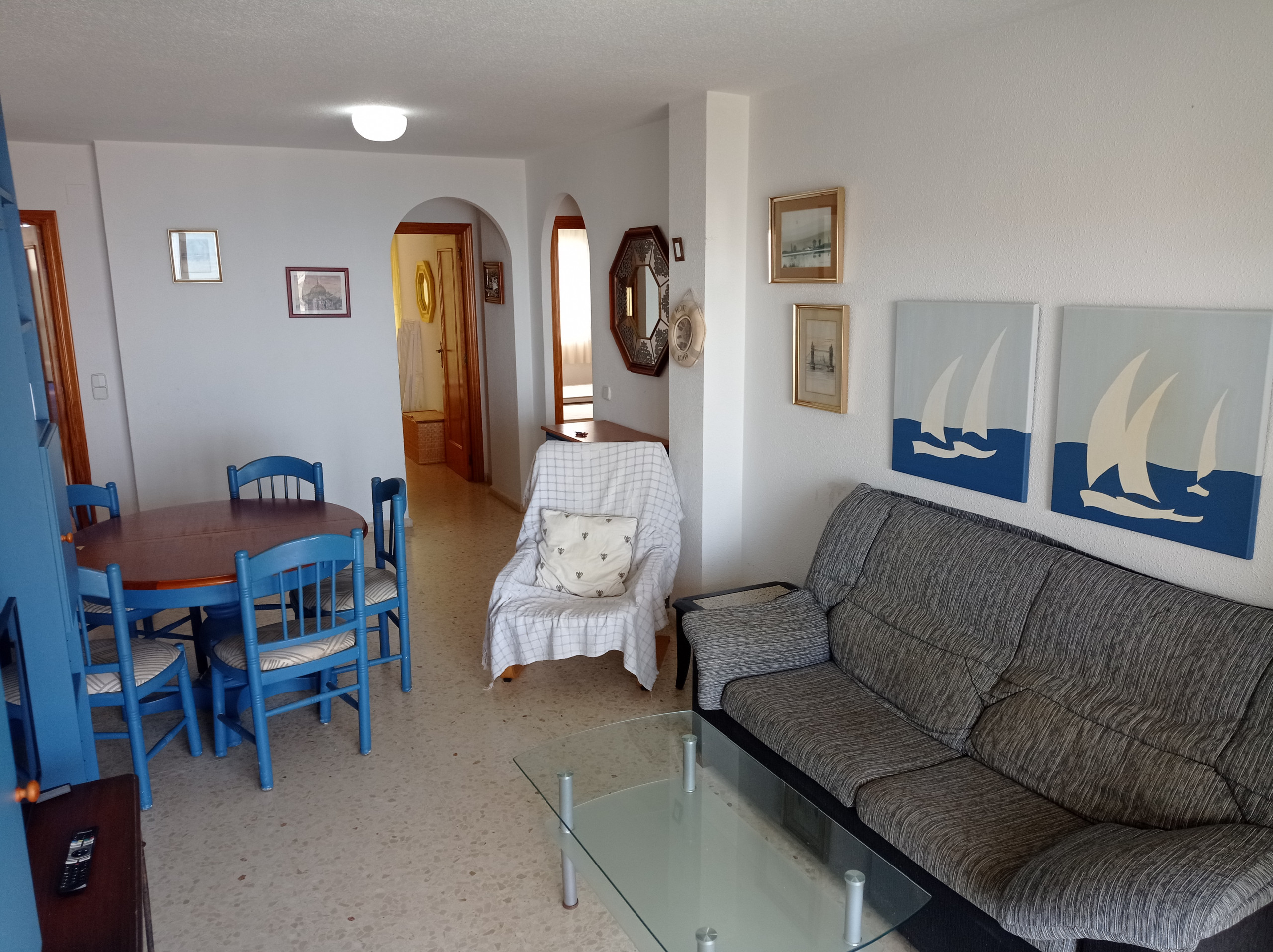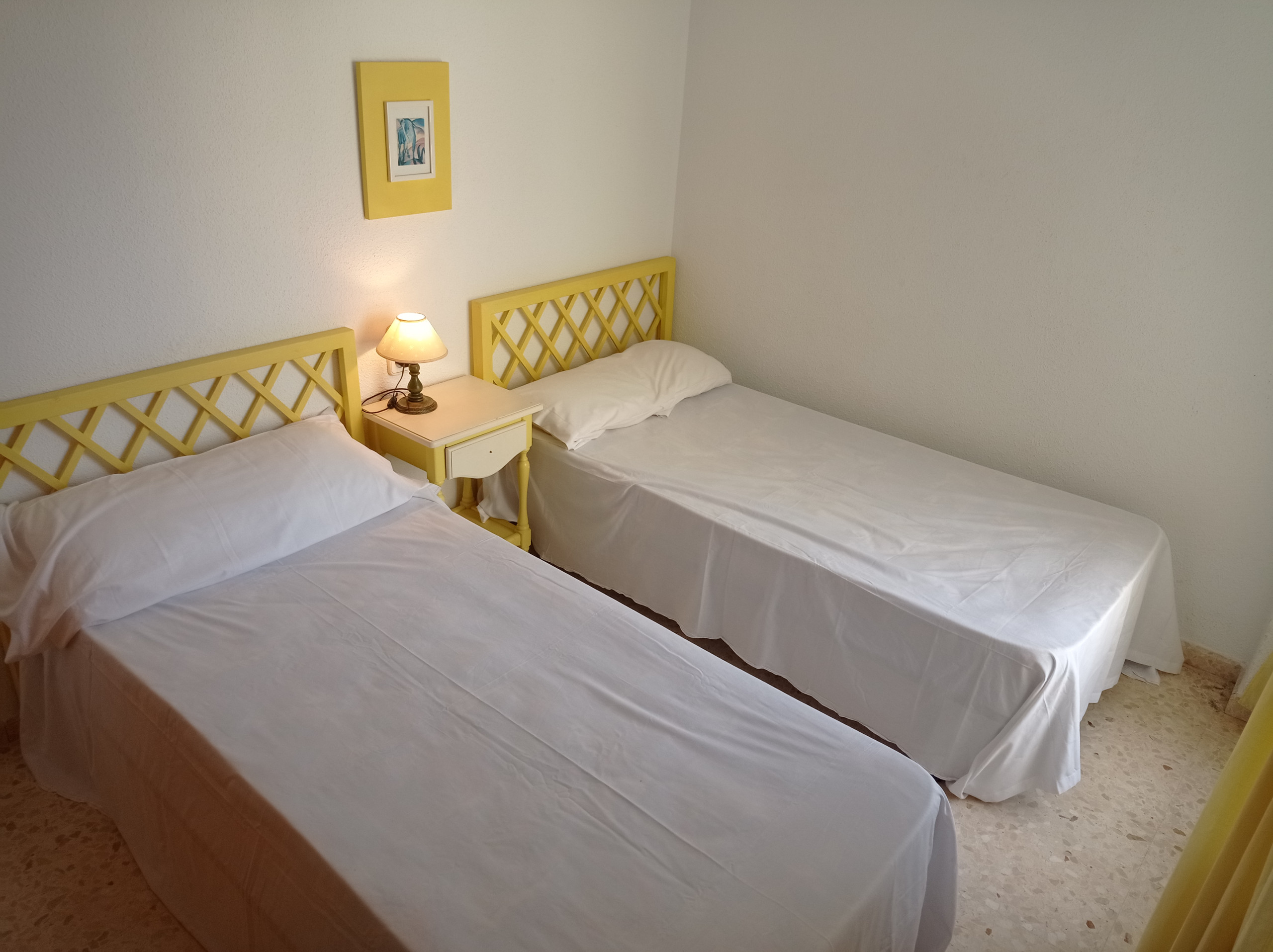 Bel et spacieux appartement avec trois chambres, une salle de bain (avec baignoire), un toilette-douche, et une cuisine indépendante avec accès par un escalier extérieur à une grande terrasse supérieure. Salon confortable avec sortie sur une belle et intimiste terrasse d'orientation Est frontale avec auvent, d'où l'on peut profiter de la vue sur la mer, la piscine et les zones communes paysagères. Équipé de ventilateurs de plafond dans toutes les chambres, il dispose du service WIFI et comprend une place de parking.
