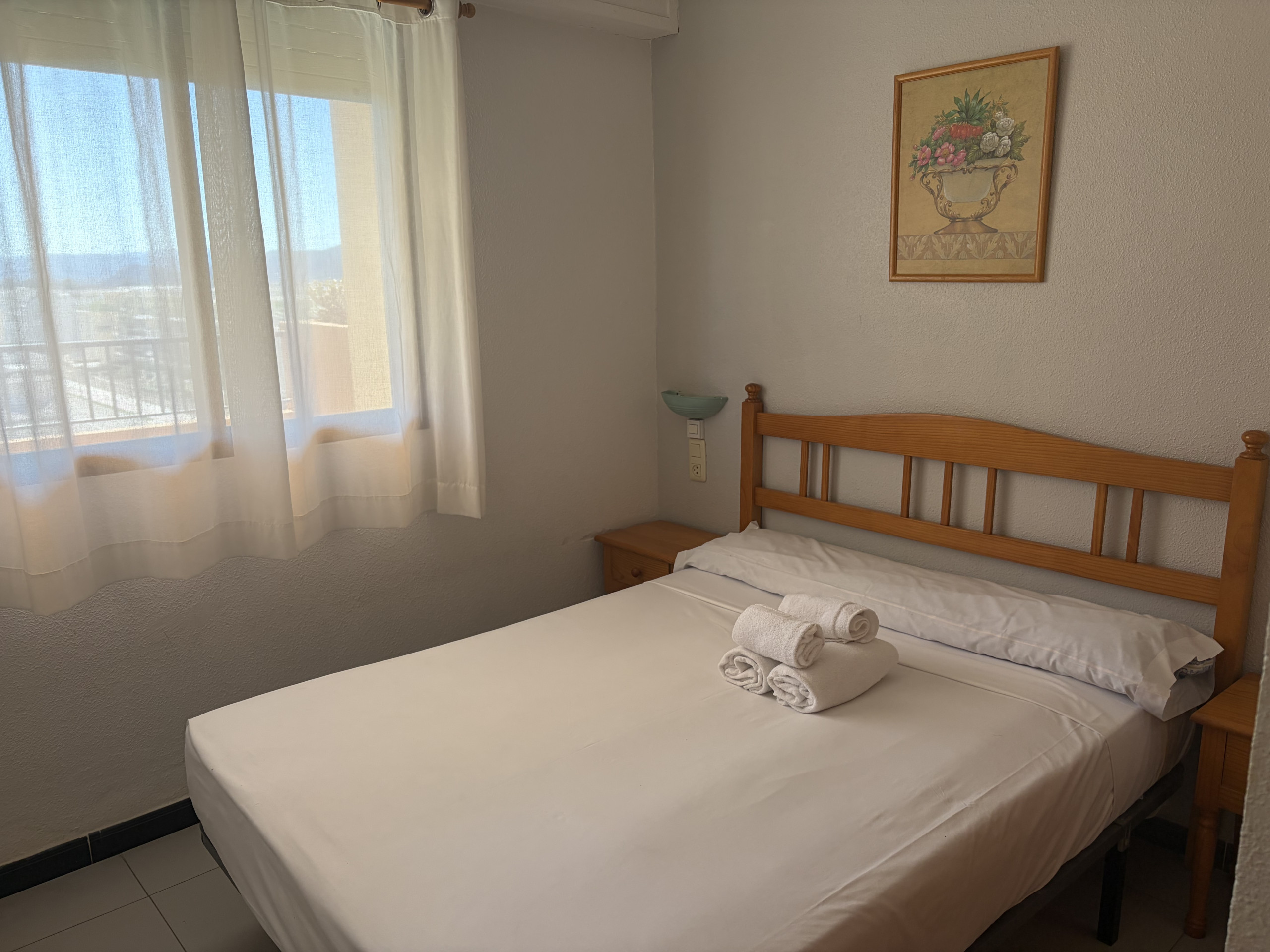 Cet appartement situé au cinquième étage a deux chambres doubles, une salle de bain avec baignoire, cuisine, galerie et salon-salle à manger avec sortie sur une large terrasse avec vue sur les zones communes, la piscine et les montagnes. Capacité 4 personnes.