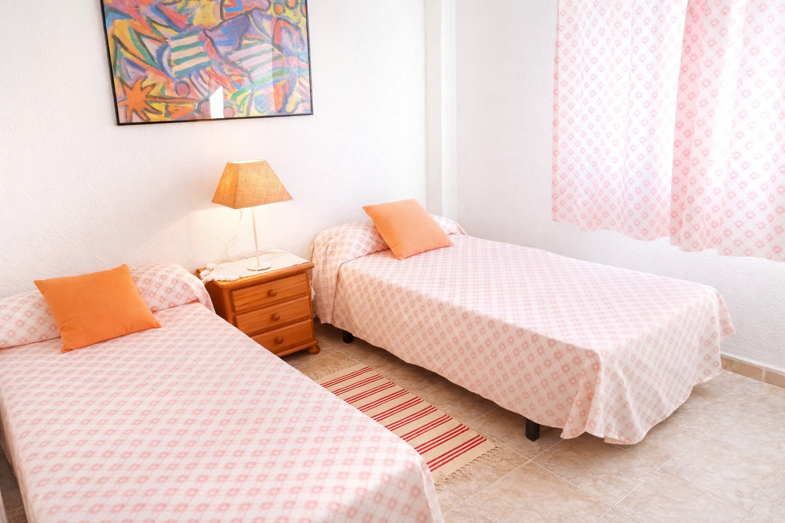 Denna lägenhet erbjuder två dubbelrum med inbyggda garderober, ett vackert, exteriört och ljust renoverat badrum med badkar, och ett rymligt och separat utrustat kök med diskmaskin. Vardagsrum med utgång till terrassen mot norr, från vilken vi njuter av fantastisk utsikt över Medelhavet och stranden. Inkluderar WIFI-tjänst och erbjuder takfläktar i båda sovrummen.