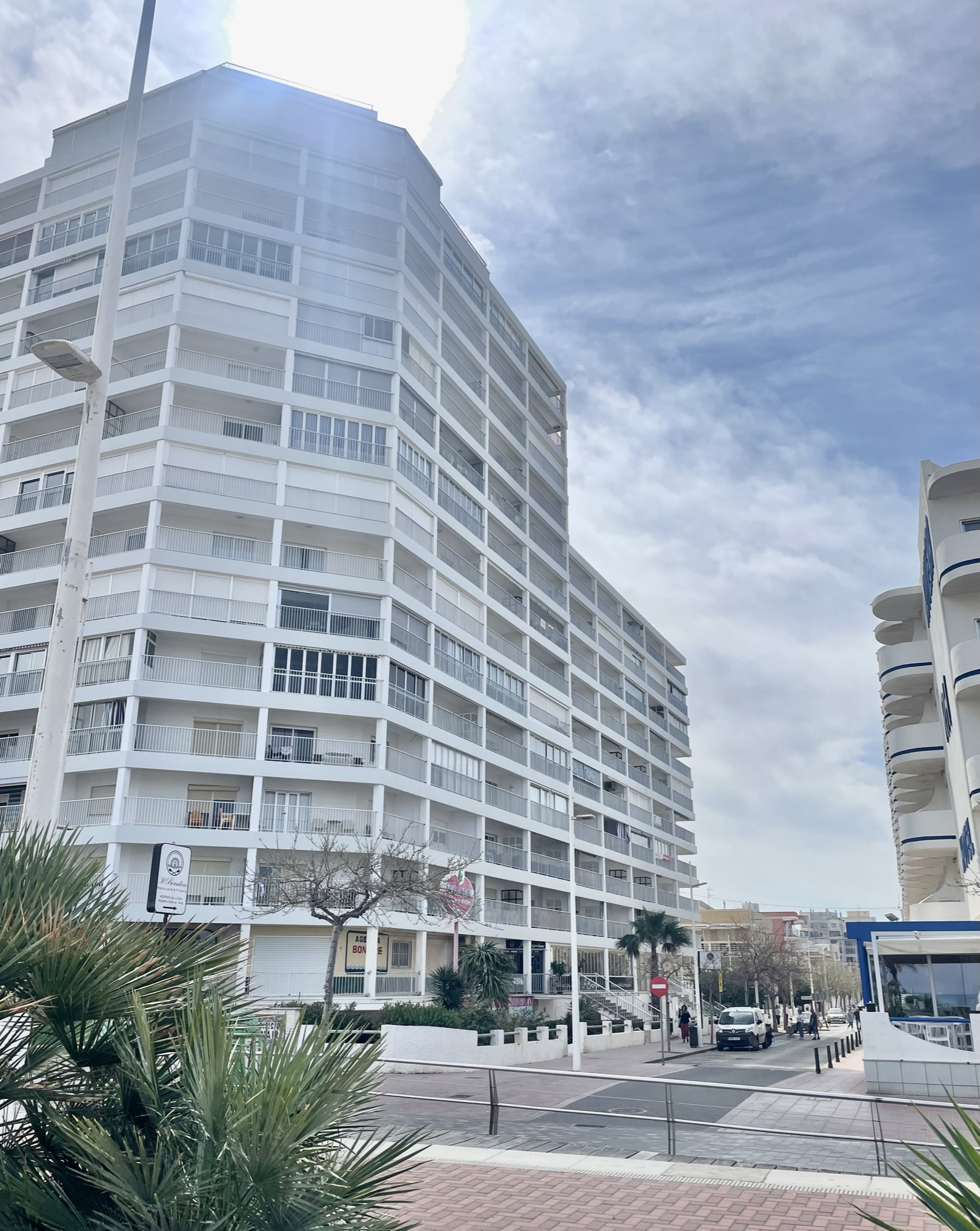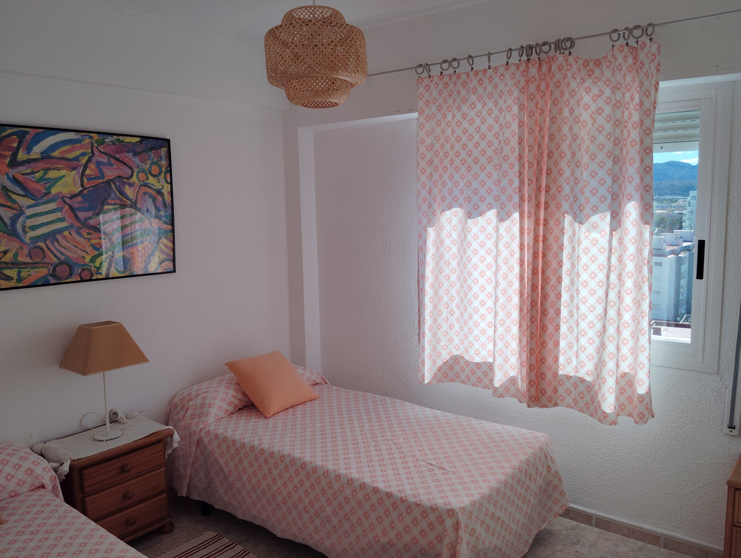 Denna lägenhet erbjuder två dubbelrum med inbyggda garderober, ett vackert, exteriört och ljust renoverat badrum med badkar, och ett rymligt och separat utrustat kök med diskmaskin. Vardagsrum med utgång till en nordlig terrass som är sval, från vilken vi njuter av fantastisk utsikt över Medelhavet och stranden. Inkluderar WIFI-tjänst och erbjuder takfläkt både i vardagsrummet och i huvudsovrummet.